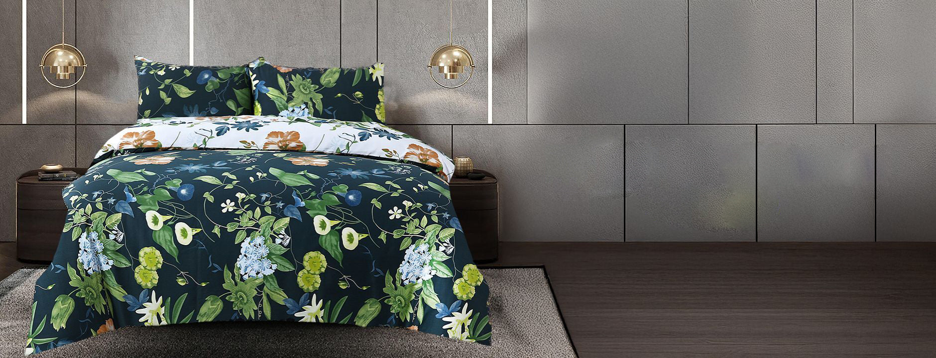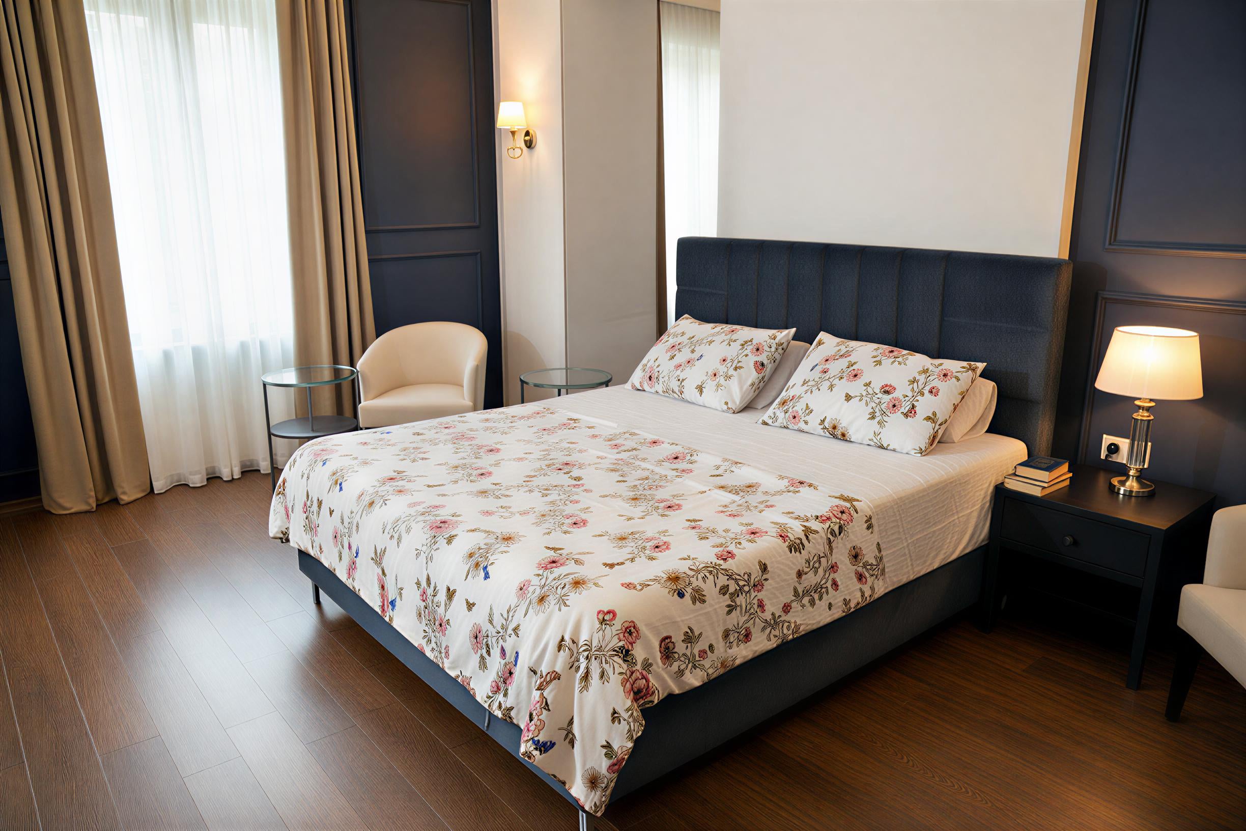 Midnight Bloom – Floral Duvet Cover with Fitted Sheet